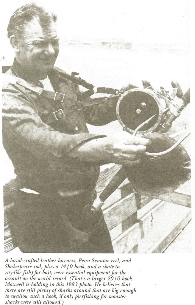 The Tiger shark world record holder was not often photograped but in rare occasion in 1983 he had his picture taken for an interview.He is shown in the picture with his famous left handed 16/0 and his shoulder harness.